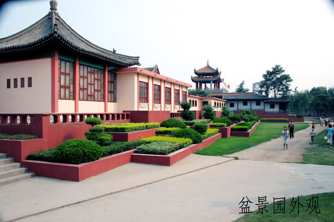 游览服务区以30亩湖面为中心,湖中建有湖心亭、曲桥、周围有鹿桥、玉带桥、云枫桥与之相连。四周垂柳依依,雪松昂扬,杨树、法桐、国槐遮天蔽日,草坪茵茵,平坦如毡、绿篱扶疏。217米长廊迂回曲折,游人荡舟湖上,激起层层涟漪,极富诗情画意。占地6000m2盆景园体现了古典园林与现代园艺相结合的建筑风格,宏伟壮观,使人心旷神怡,仿佛使人置身于人间仙境。