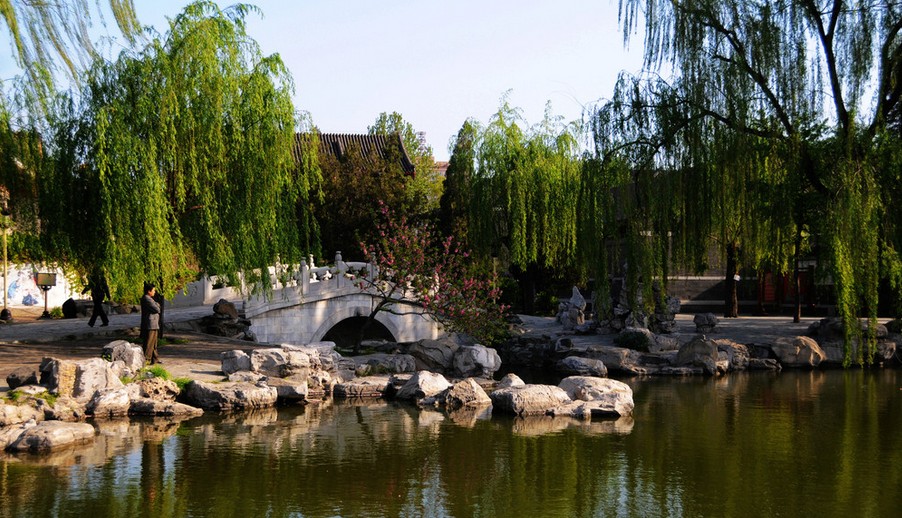 北京大观园是一座再现中国古典文学名着 《红楼梦》中“大观园”景观的仿古园林,位于宣武区南菜园(市区西南隅护城河畔 )。原址为明清两代皇家菜园,明代曾在此设“嘉疏署”。1984年为拍摄电视剧《红楼梦》,经红学家、古建筑家、园林学家和清史专家共同商讨,按作者在书中的描述,采用中国古典建筑 的技法和传统的造园艺术手法建造。园中的园林建筑、山形水系、植物造景、小品点缀等,均力图忠实于原着的时代风尚和细节描写,《红楼梦》中的大观园是为贾府大小姐元春而建的省亲别墅,因此园中定期举办“元妃省亲”古装表演。