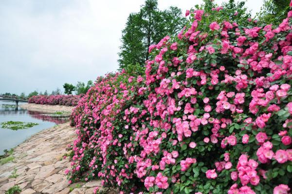 近日,辰山植物园内长达600米的安吉拉月季花墙已进入盛花期,粉红色的花朵将墙面完全包裹,宛如一片立体的花海。藤本月季花多色